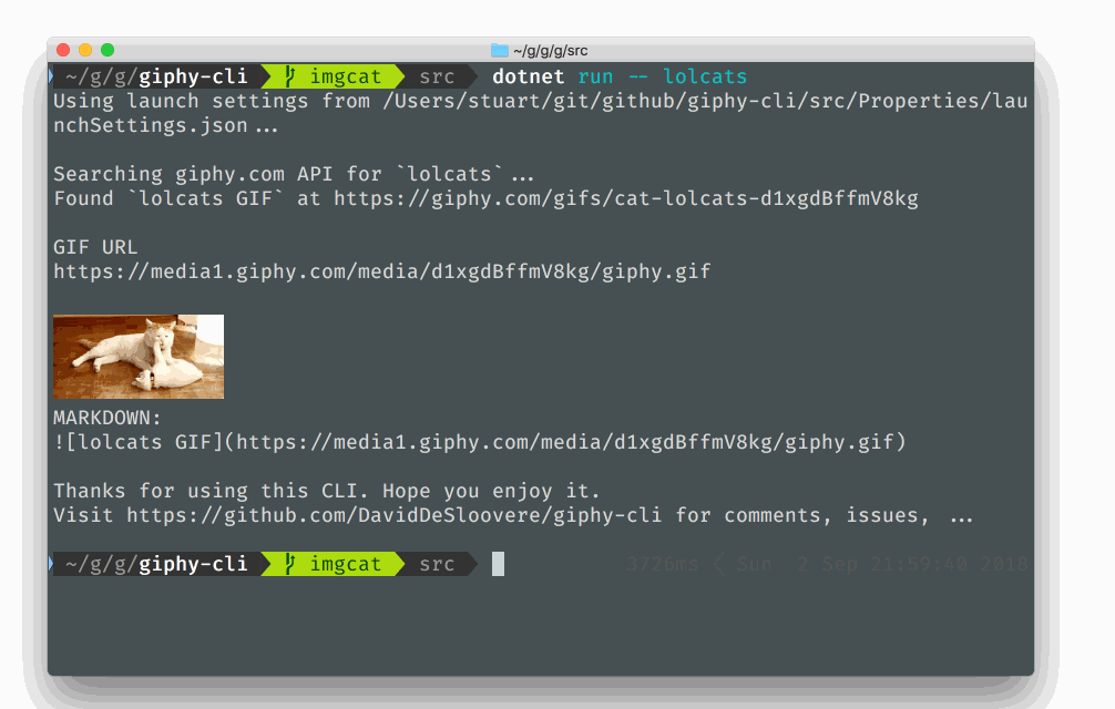 Now that dotnet global tools are a thing, we are seeing an explosion of cool new cross platform command line apps being built with dotnet. A recent example of this is Giphy CLI, this is a tool to quickly get a gif url from giphy.com and markdown snippet ready for pasting.